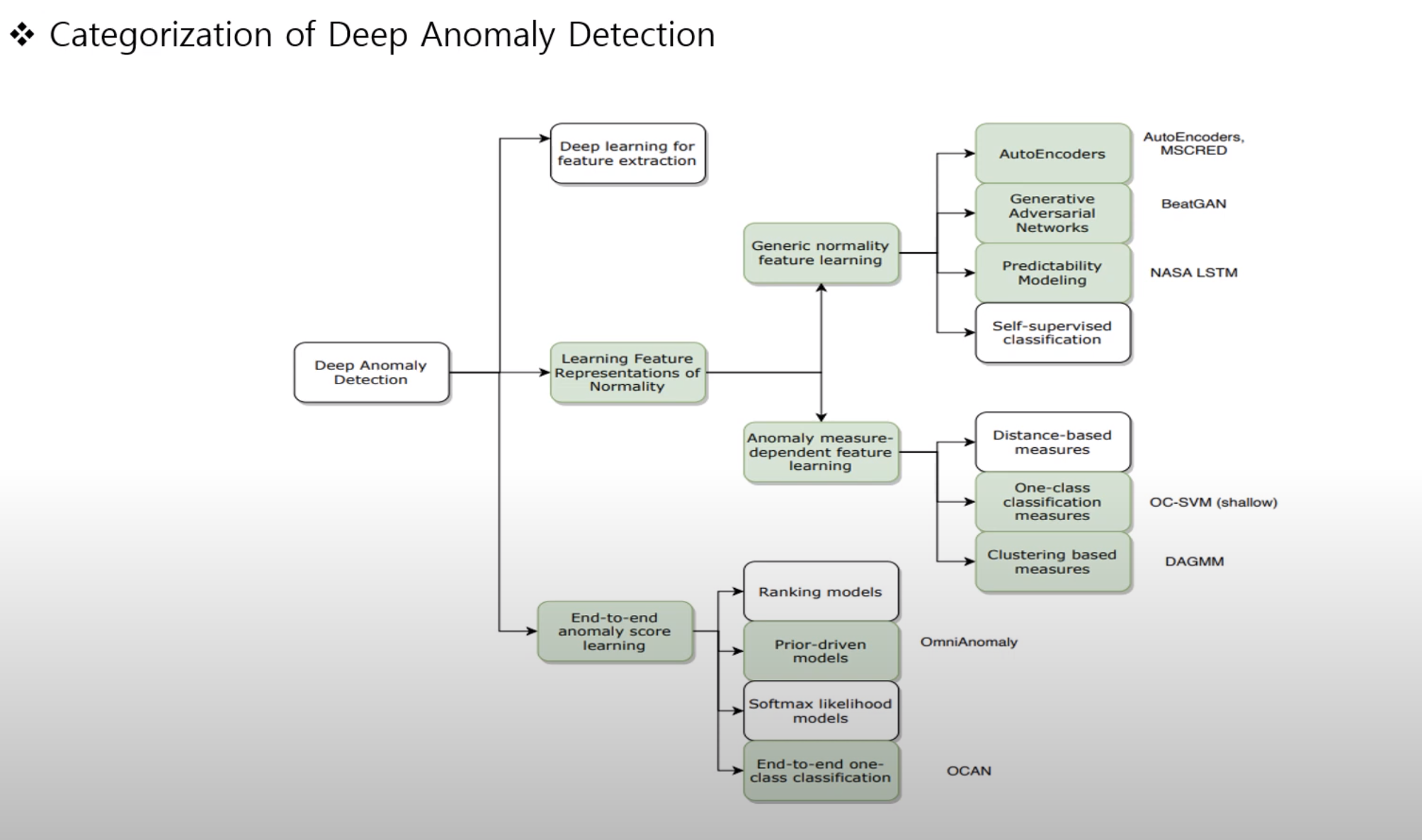 - DL method는 anomaly detection 목적에 맞게 representation learning 가능